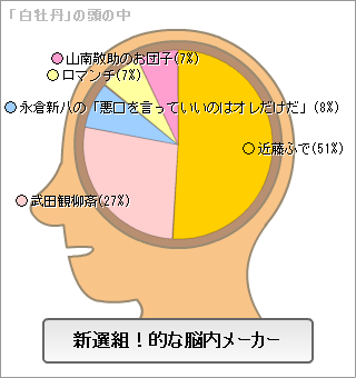 次の「武田観柳斎」27パーセントってのもなぁ……副長関連の「ロマンチ」7パーセントよりも圧倒的に多いじゃないっすか(爆)。