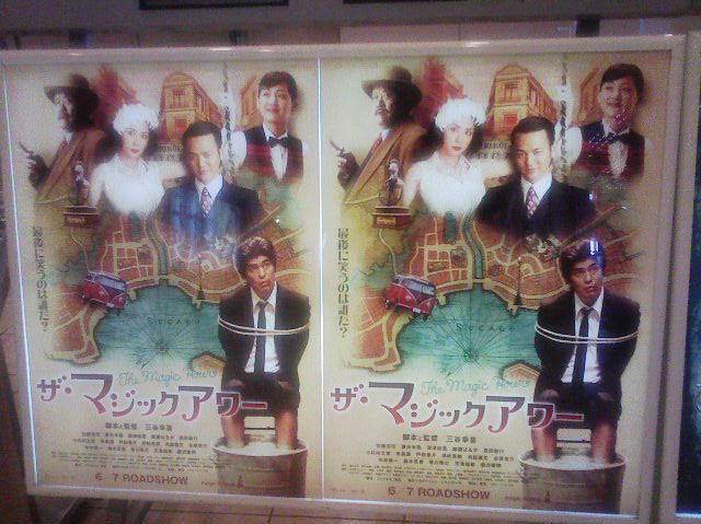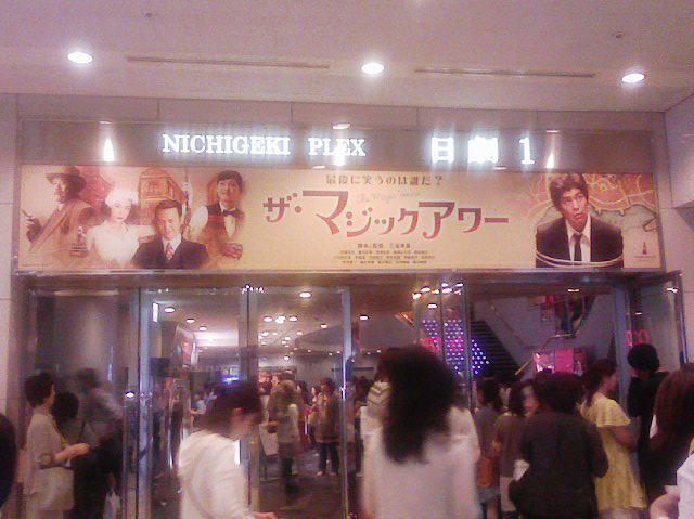 上は開演直前の日劇入り口付近、下は入り口手前に置かれた『ザ・マジックアワー』のパネルです。