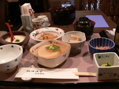 自分は昼前にちょっと肉系の間食(伏見名物、すずめの串焼きと、うずらの串焼き……^_^;)をいただいてしまったので、昼食は野菜中心のおばんざい膳にしたわけですが。