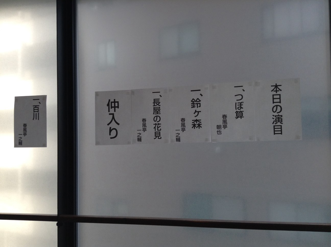 一日目は二階席の三列目だったので今ひとつ落語にtune inできなかったのですが、二日目は端ながら前から二列目なので、よく集中できました。