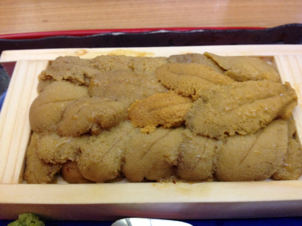生ウニは、むらかみさんのに比べると見た目ちょっと色が悪いですが、てんこもりで1200円(確か? 時価)でした。