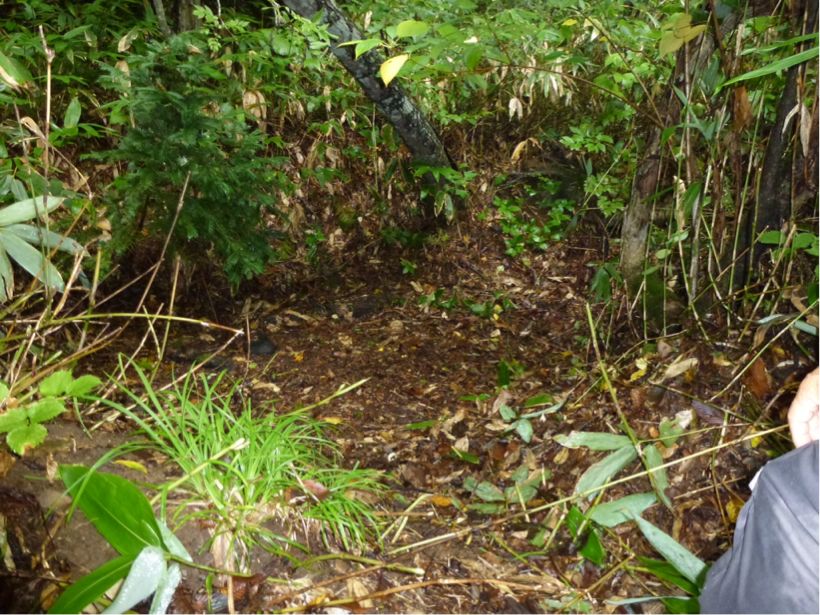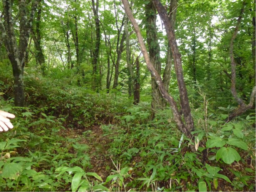 塹壕跡。もーさんの数え方ではf10-f11です。もーさんは山歩きが得意なので16基の塹壕跡を