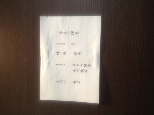 「親子酒パート2」といってました。橘屋圓蔵師匠関係で札幌の落語会に出るはずがうっかり忘れて池袋昼席に出てしまい、そこから札幌に向かうという……。