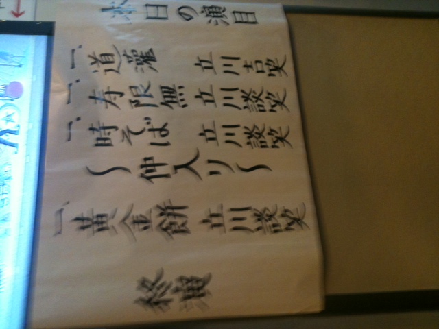 昼の部と違って、夜の部はわりとおとなしめ。馬石さんは、昼席から夜席に回った事情について面白く語りたかったんだろうけど、そこは今ひとつ何が面白かったのかわからなかった。